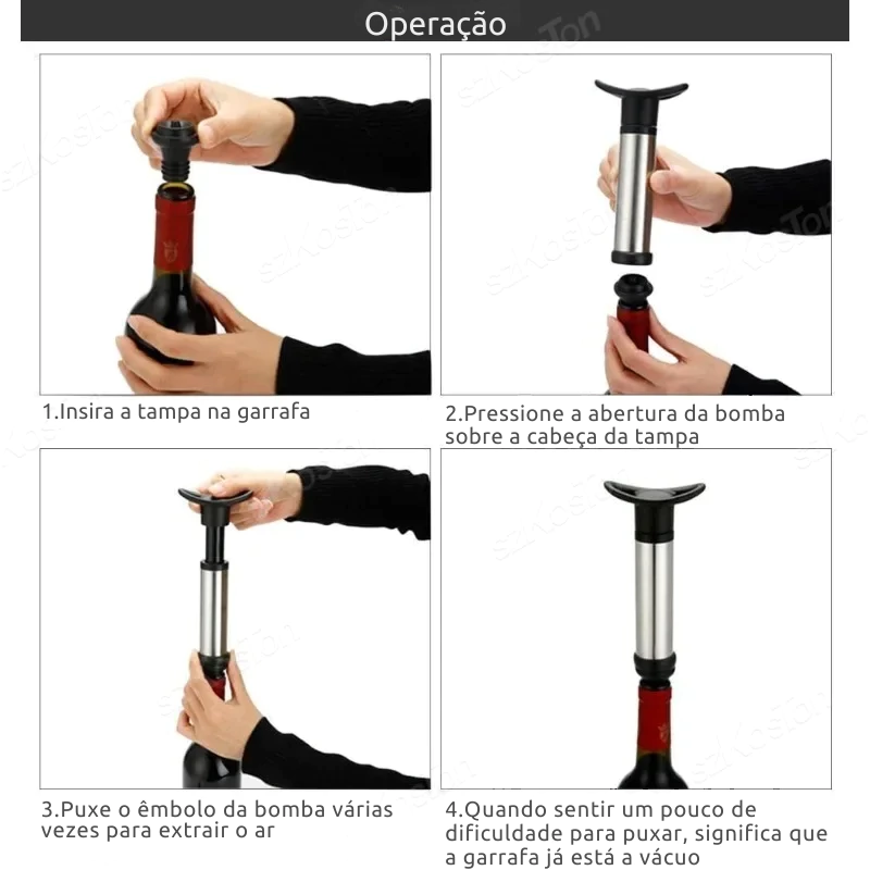 Para todos os amantes de vinho, apresentamos a Bomba a Vácuo Premium, o acessório essencial para manter o sabor e a qualidade da sua bebida preferida por muito mais tempo. Com design sofisticado e tecnologia de ponta, esta bomba é a solução perfeita para garantir a preservação de vinhos de forma eficaz.